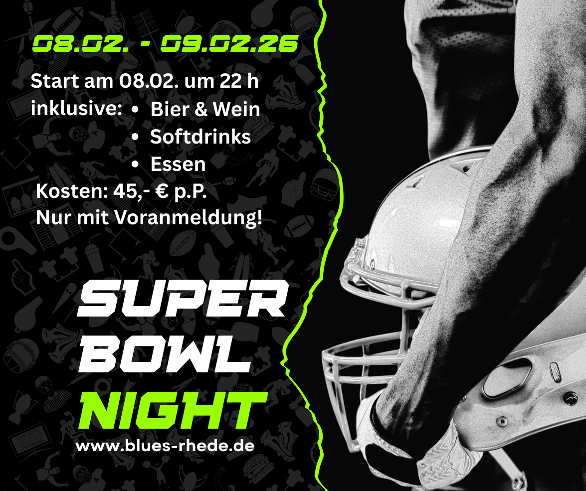 Wir erwarten Euch zur großen Super Bowl Night im blues um mit Euch live das Spiel zu verfolgen. Bucht Euer Ticket für 45,- Euro und seid dabei!